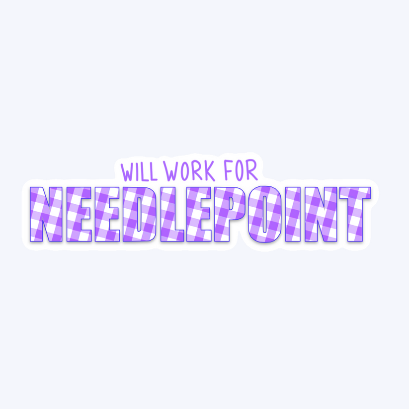 Will Work for Needlepoint Purple Plaid Sticker